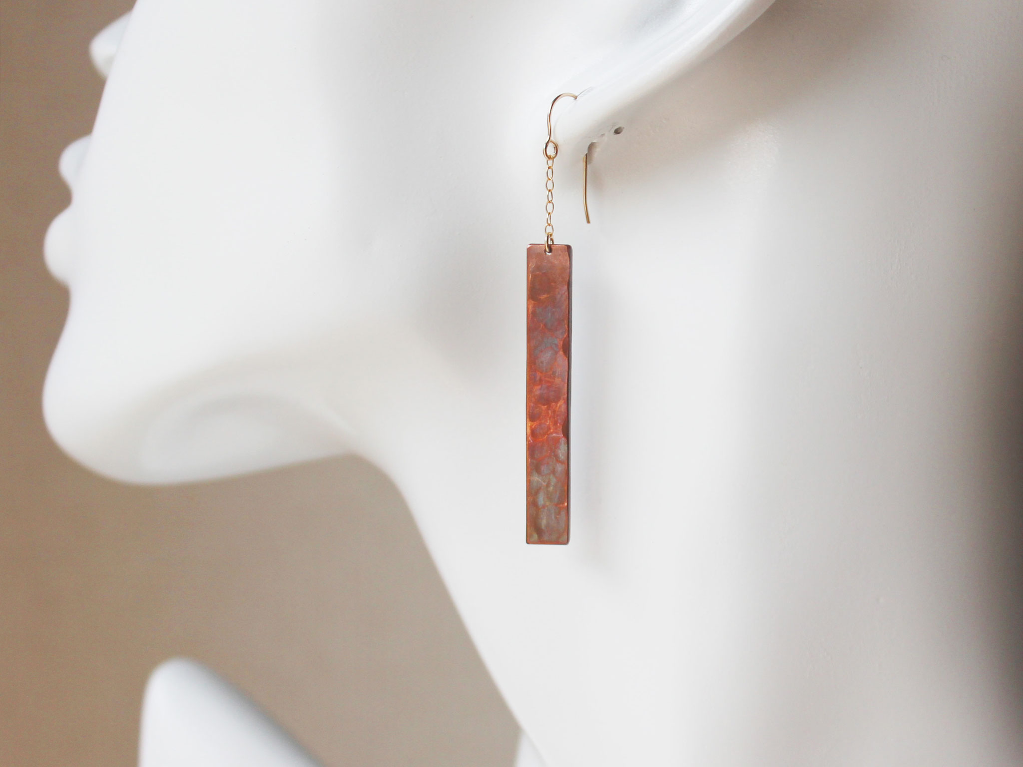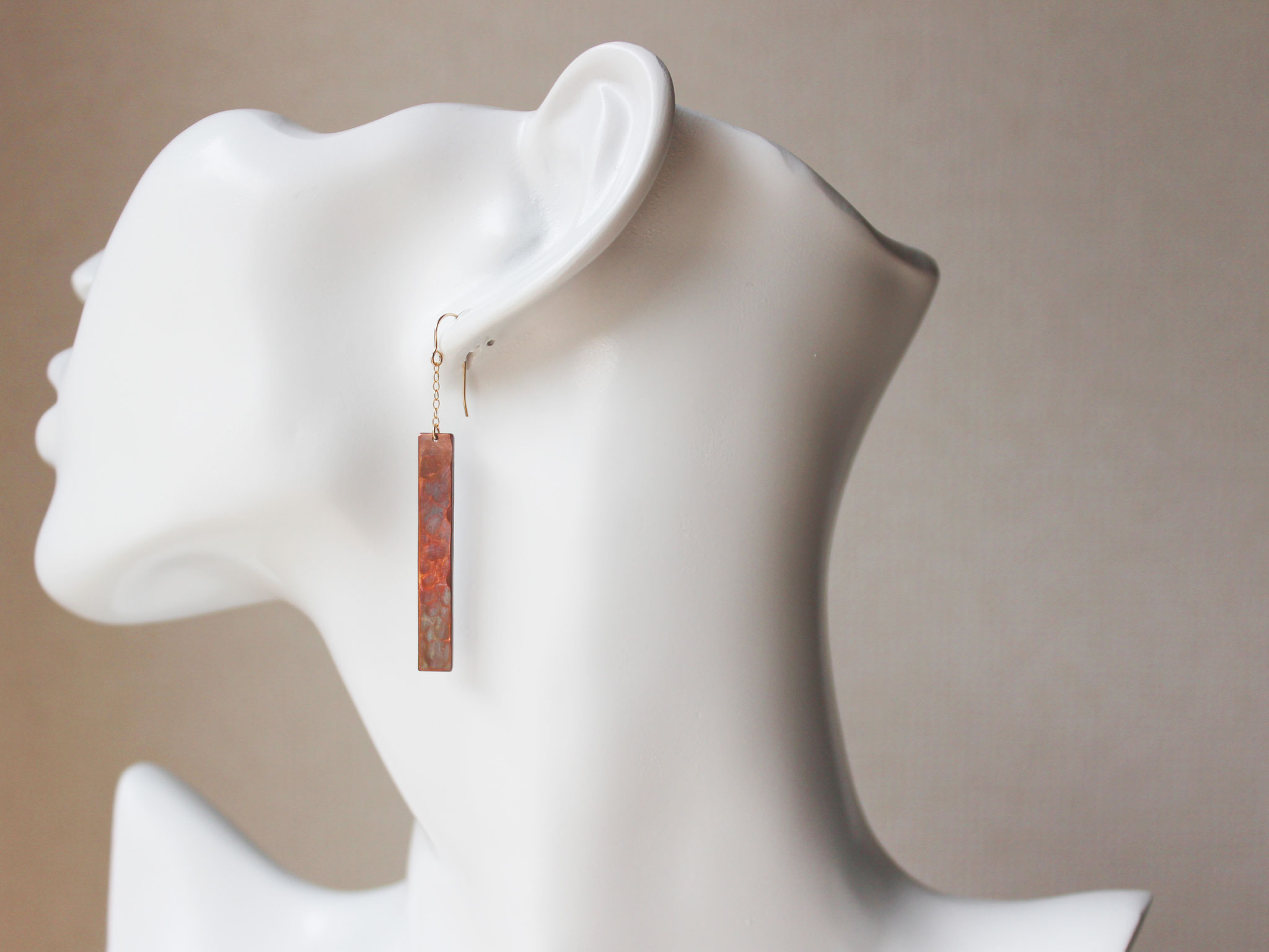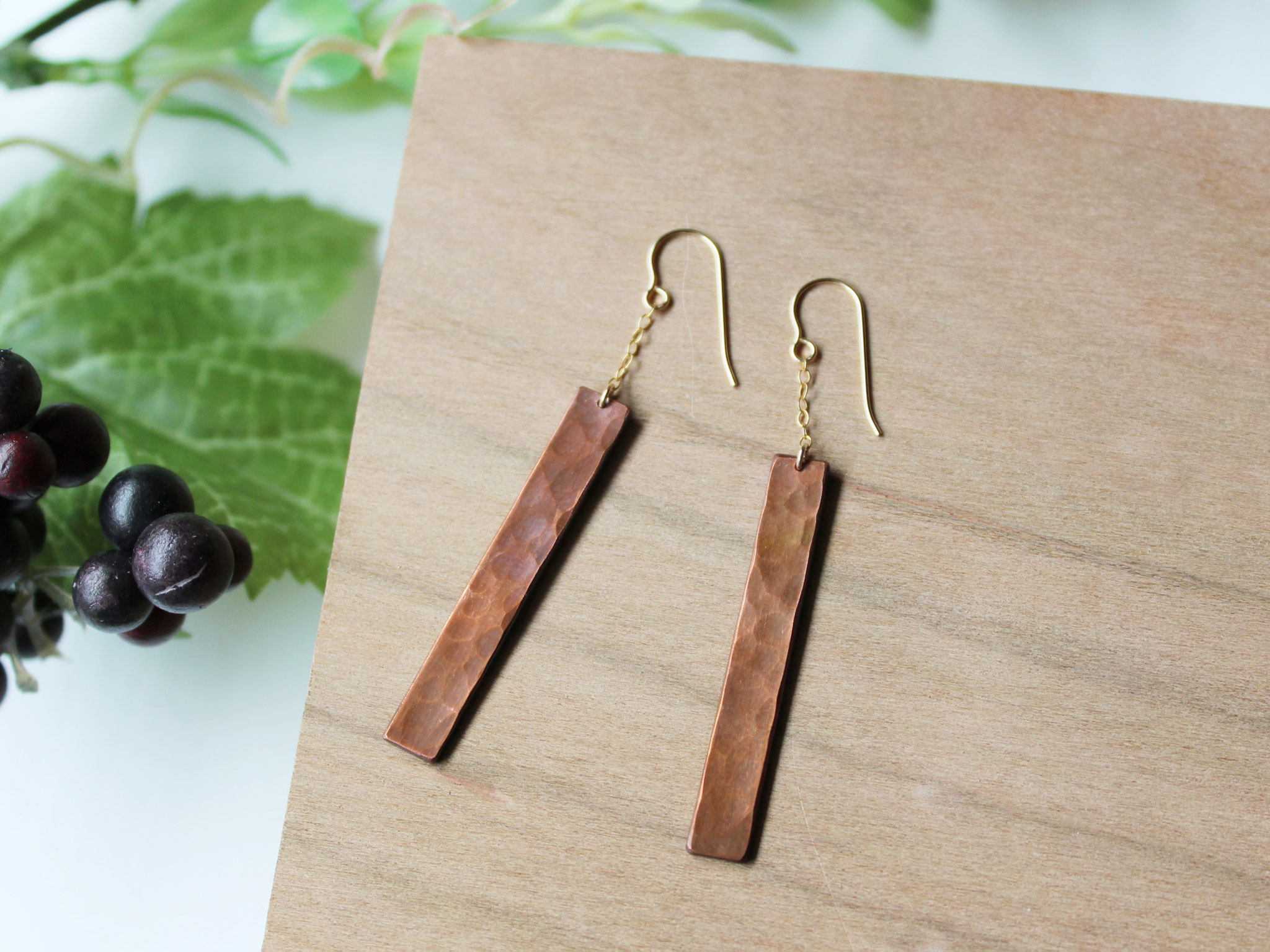 銅のK14GFチェーンのピアス~鎚目のいぶし仕上げ~